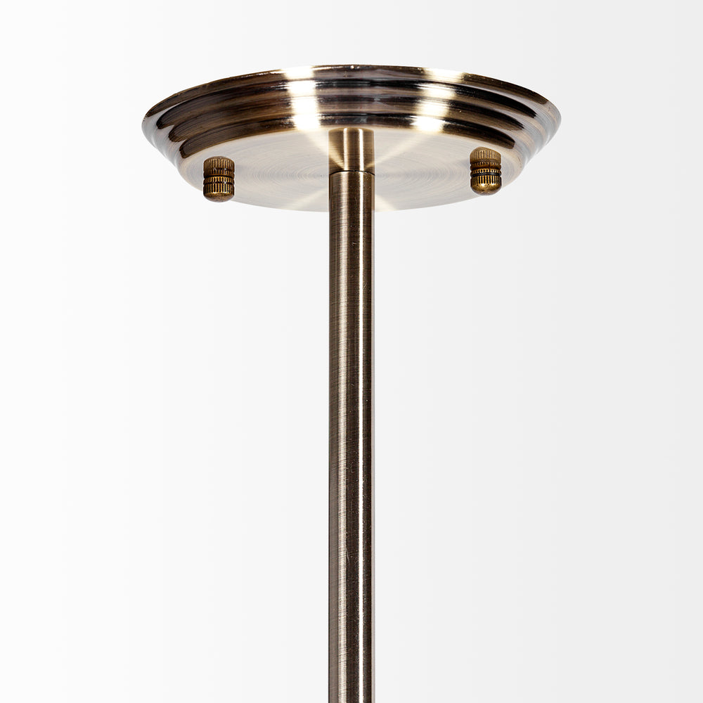 Champagne Metal Multi-Arm Three Light Chandelier. Crafted from antiqued-champagne toned metal, the Desousa II is a ritzy, multi-arm style chandelier featuring glass globe lights with geometric details that add a touch of panache to any space.