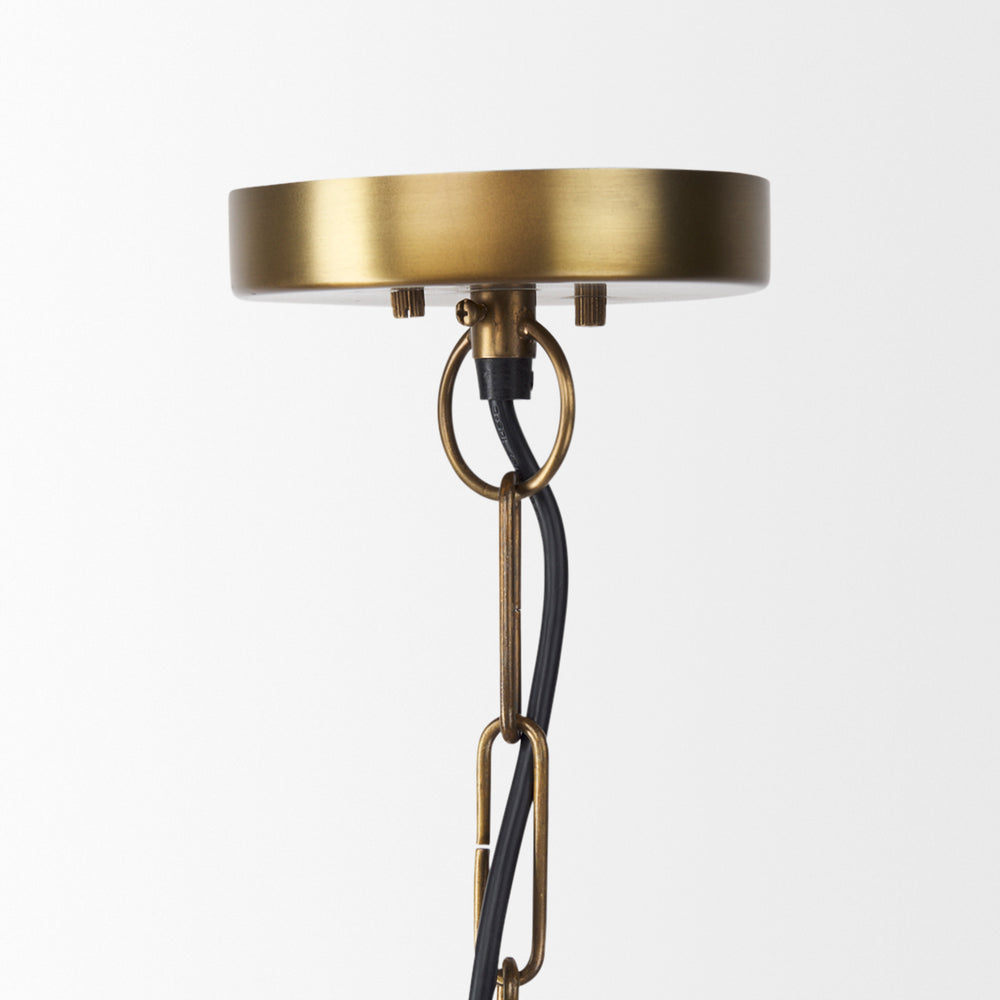 The Fenton pendant light measures 18.0"L x 18.0"W x 23.0"H. Angular and streamlined, this modern pendant light features an all-iron, conical shade suspended on a height-adjustable chain. Contrasting beautifully against the matte white exterior, the bright gold interior spreads a beautiful, warm radiance. Straightforward in design with a warehouse feel, this piece is perfect for placing in interiors with a modern industrial edge.