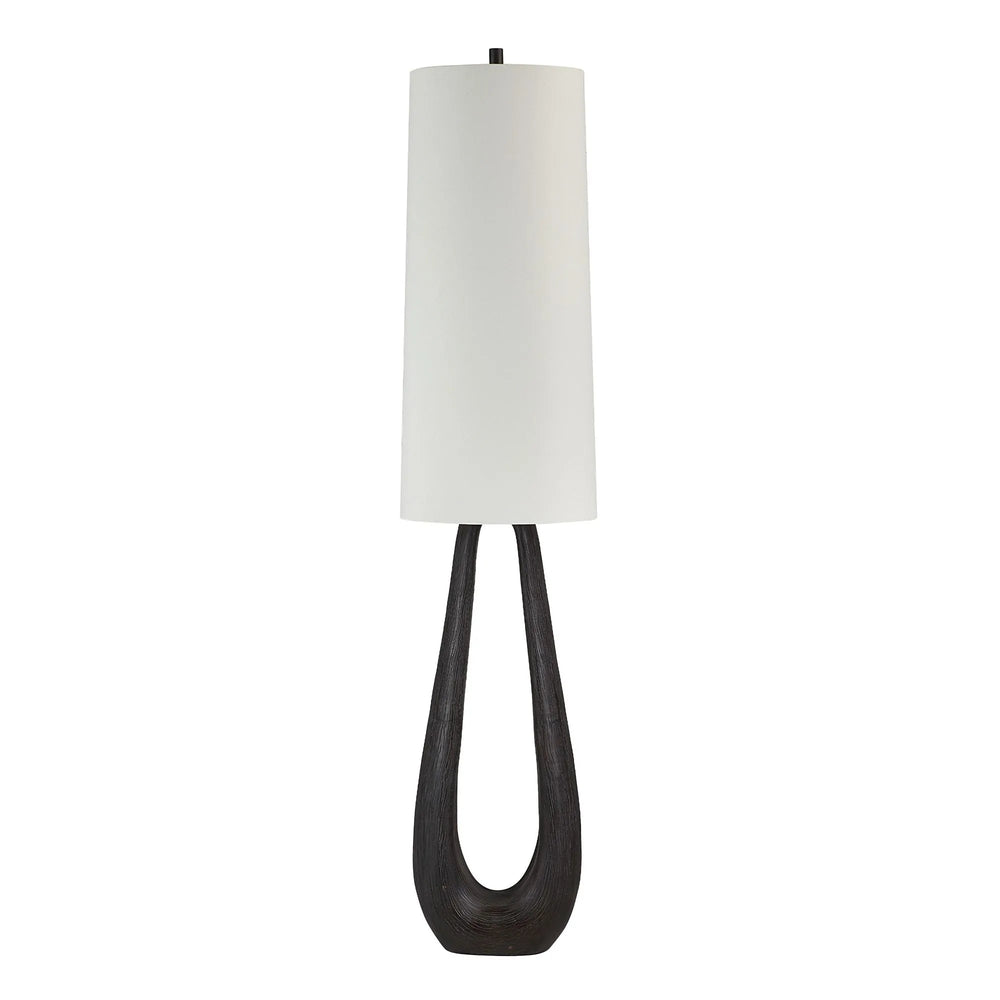 Add a stunning sculptural touch to any home or office with the Cornelia floor lamp. Crafted with a dark walnut-painted iron body, it has a handmade look that will elevate any room. Sitting in perfect contrast is an ivory linen tapered drum shade that filters light throughout the space. Lighting levels are easily customizable thanks to a dimmer foot switch that allows for perfect ambiance whether used in a bedroom, living room, dining room or anywhere else in need of illumination and style.