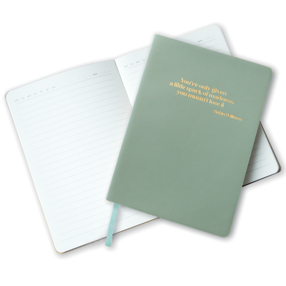 • 5.5 x 8 Inches Vegan Leather in Mint Soft Cover Foil Stamped Cover