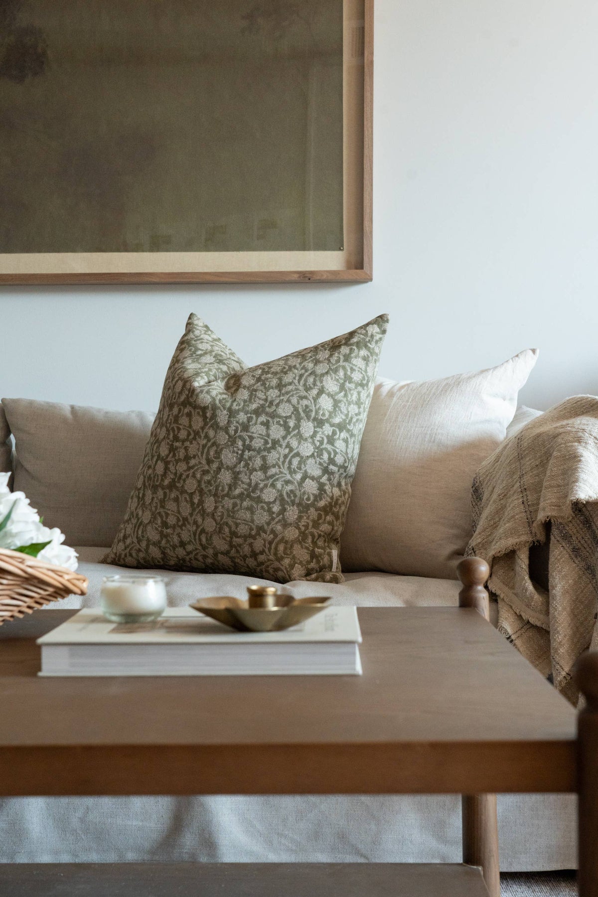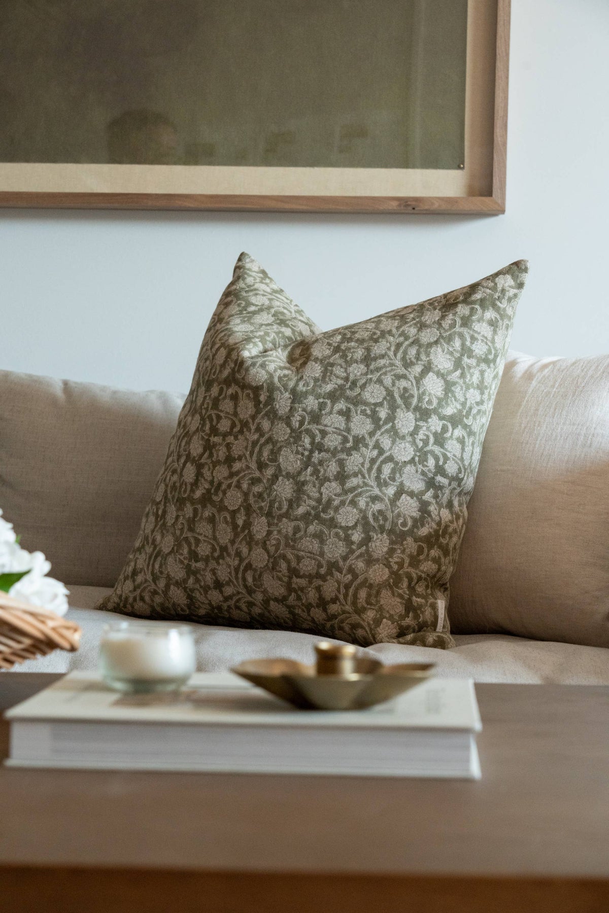Meet Olivia - This elegant botanical motif on a soft green background adds timeless charm and interest to your decor this season. Double sided and offered in a range of sizes, these covers are a great starting point for mixing and matching other prints and patterns.