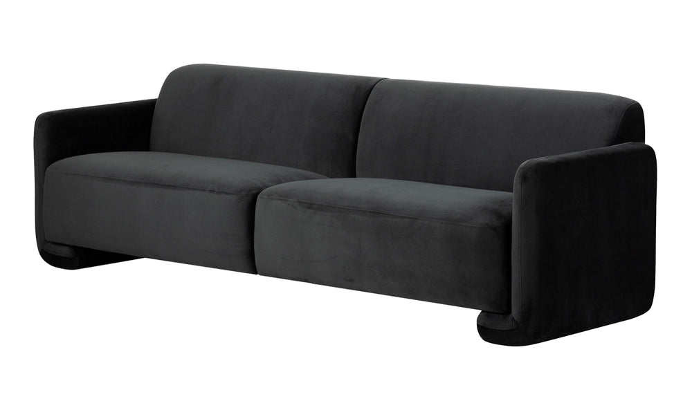 Contemporary and comforting, the Fallon sofa features generous seating upholstered with soft-to-the-touch fabric, its texture adding an element of depth and dimension. Fold-under legs draw the gaze with its structural interest, making this sofa a stand-out piece in any living space.