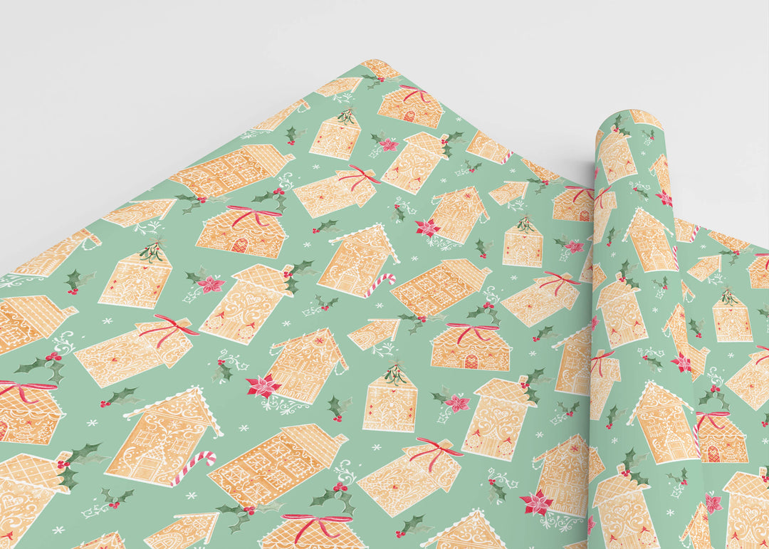 Green Gingerbread Land Christmas Gift Wrap