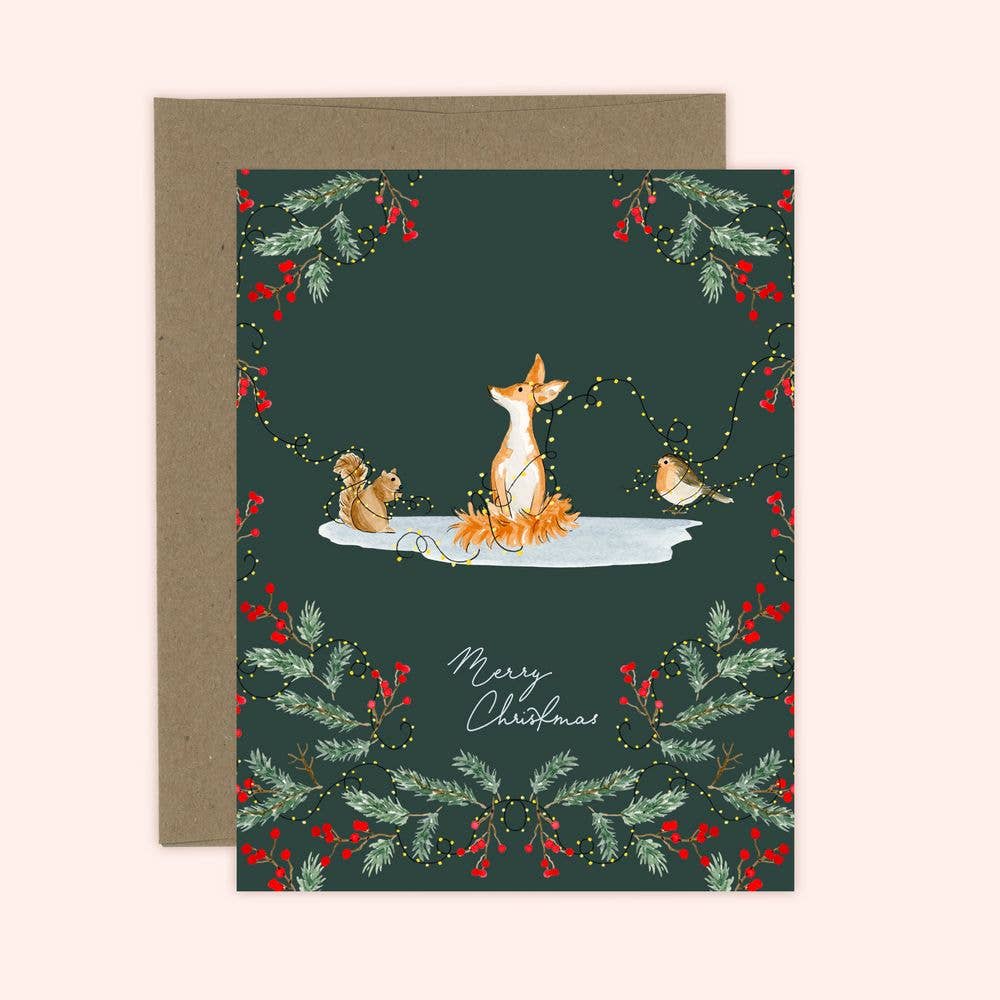 Merry Christmas Festive Fox Holiday Card Spread the holiday vibes with this Merry Christmas Festive Fox Card! Featuring cute woodland animals ready to help you wish your loved ones a cozy merry Christmas. Make it a holly, jolly festive season!